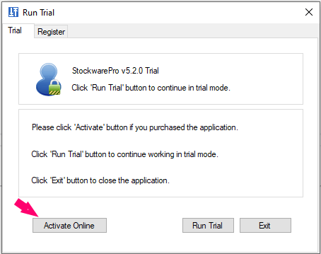 When you purchase a license, you will receive an email with the license serial number. License is issued for a single PC unless you have purchased multiple licenses. You can activate each license only once. Before you start, ensure that any antivirus software you might have haven't blocked StockwarePro from accessing the internet. You will need internet connection to activate and use the license.
