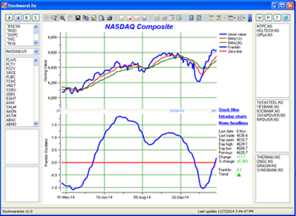 It has a unique technical indicator called Franklin Oscillator which is available only in this software. It moves in a wave like pattern and does not fluctuate too often and hence gives clear buy and sell signals. It is suitable for short term, long term and intraday analysis. Investors who like to make use of the powers of technical trading, but do not have much or any experience in this field will find it useful.